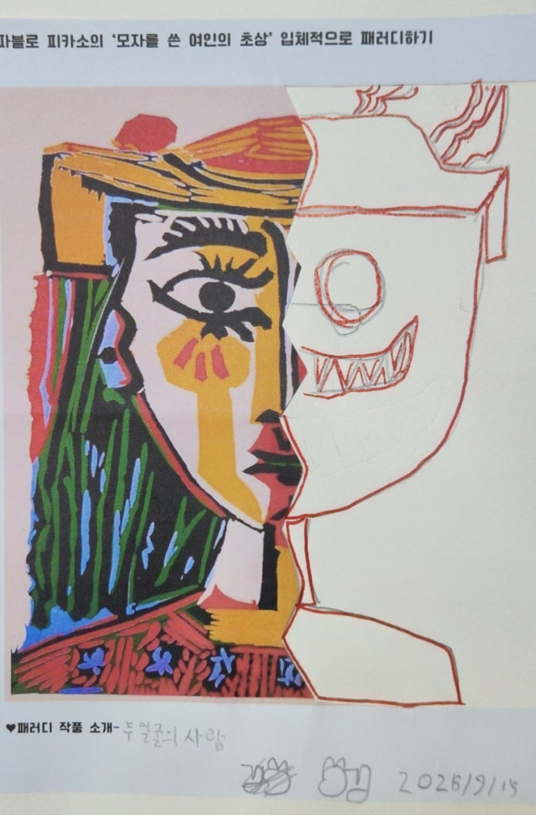 -그림을 그릴 때는 이상하기도 하지만 작품을 마치고 나면 만족감이 들었을 거 같아요. 피카소는 재미와 어려움에 도전하는 화가라고 생각해요.