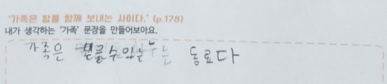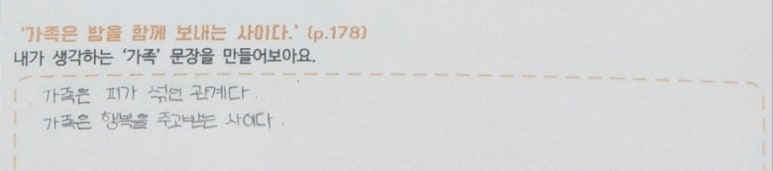 -이 문장이 이 책의 핵심을 담고 있는 거 같았어요. 호진이가 생각하는 가족은 어떤 것인지 생각해 볼 수 있었어요.