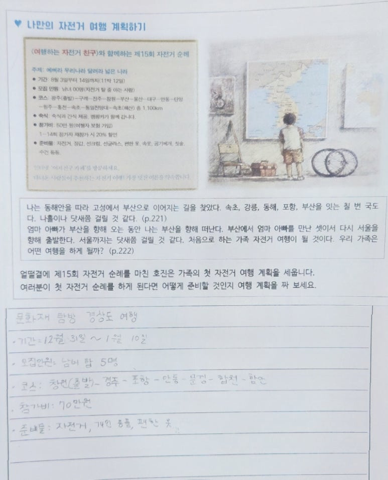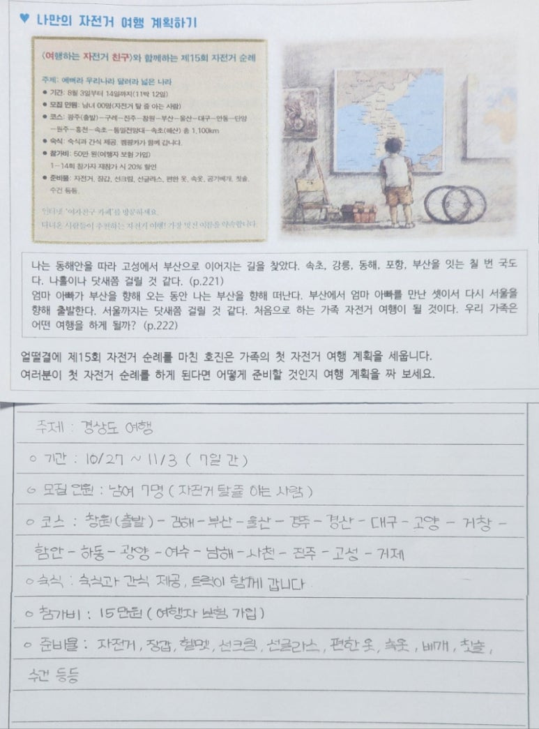 처음 계획해 보는 자전거 여행이라 경상도 지방을 중심으로 여행을 계획한 아이도 있고