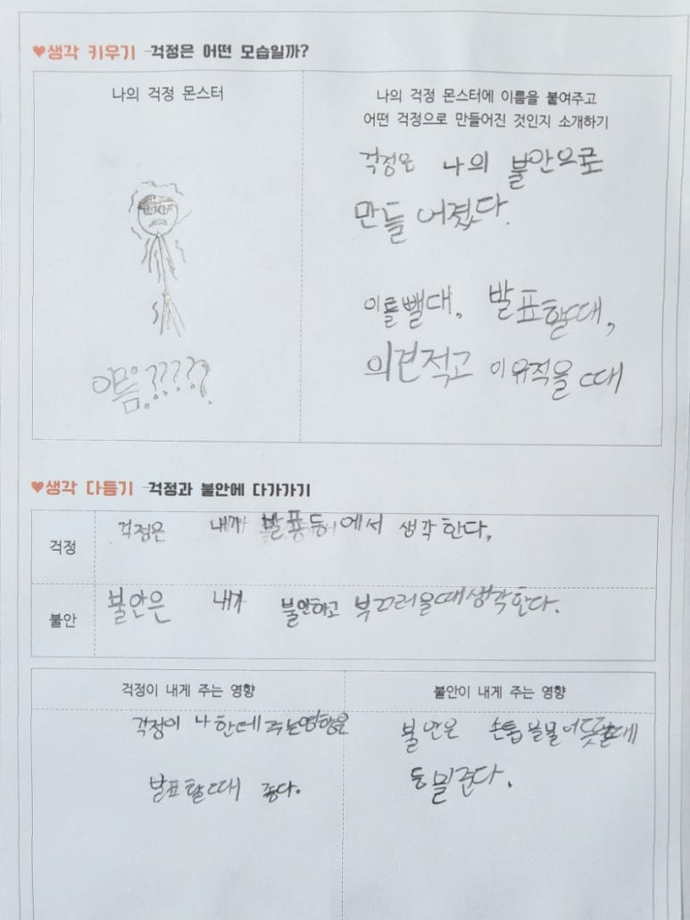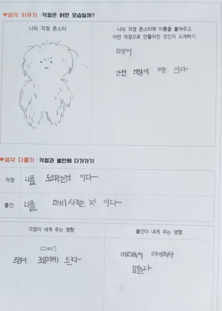 아이들과 여러 걱정과 불안에 대해 이야기하면서