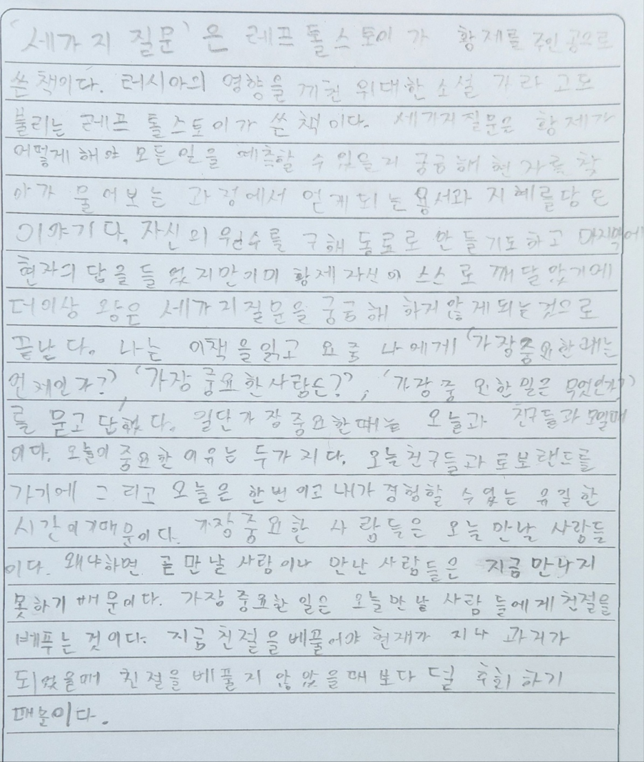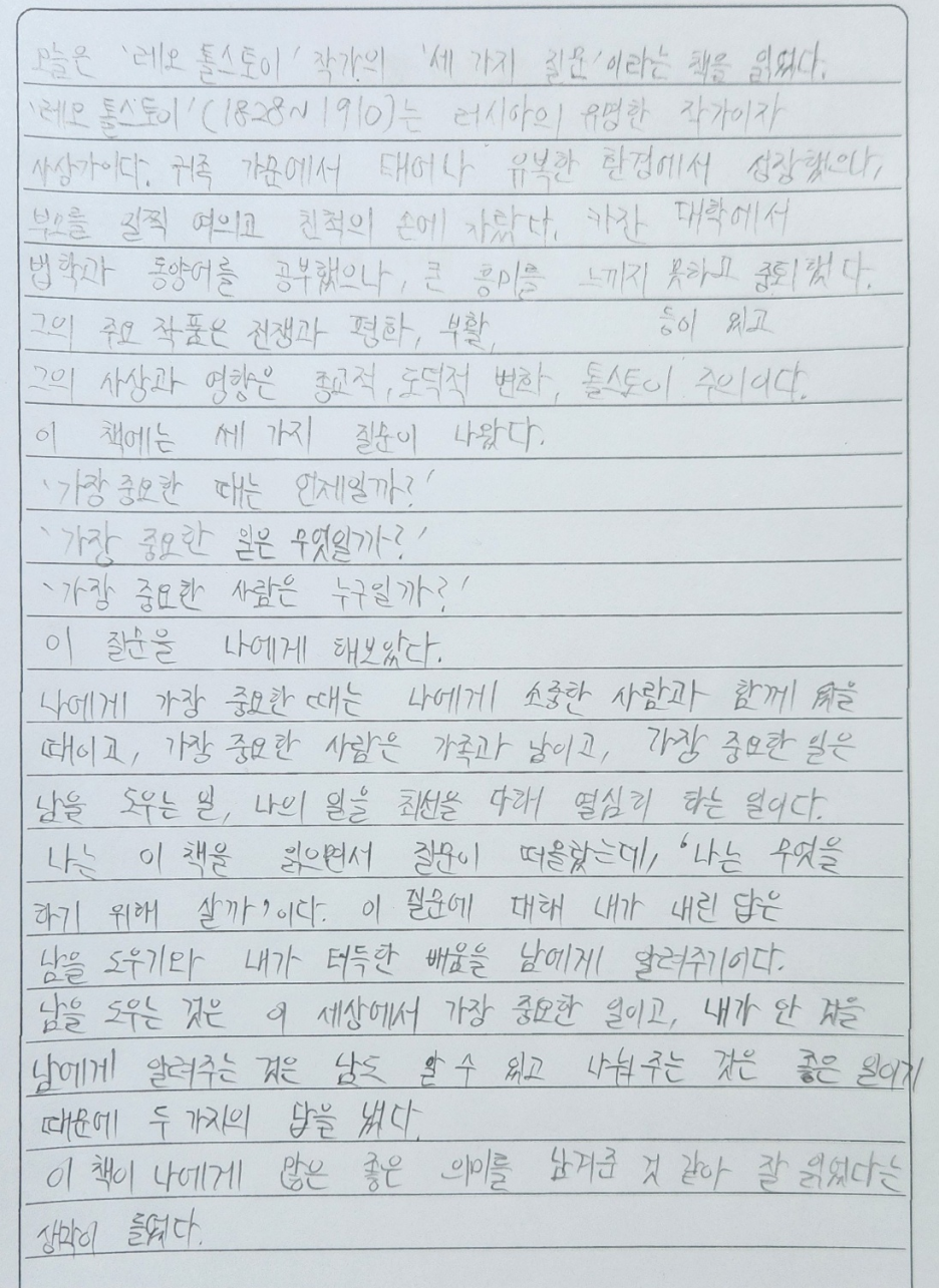 -내가 나에게 <세 가지 질문>을 건네고 답을 해봅시다.