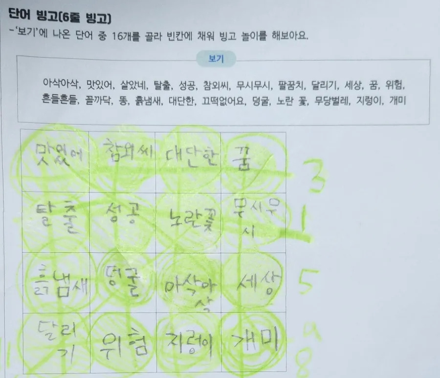 9. 낱말 빙고(6줄 빙고)