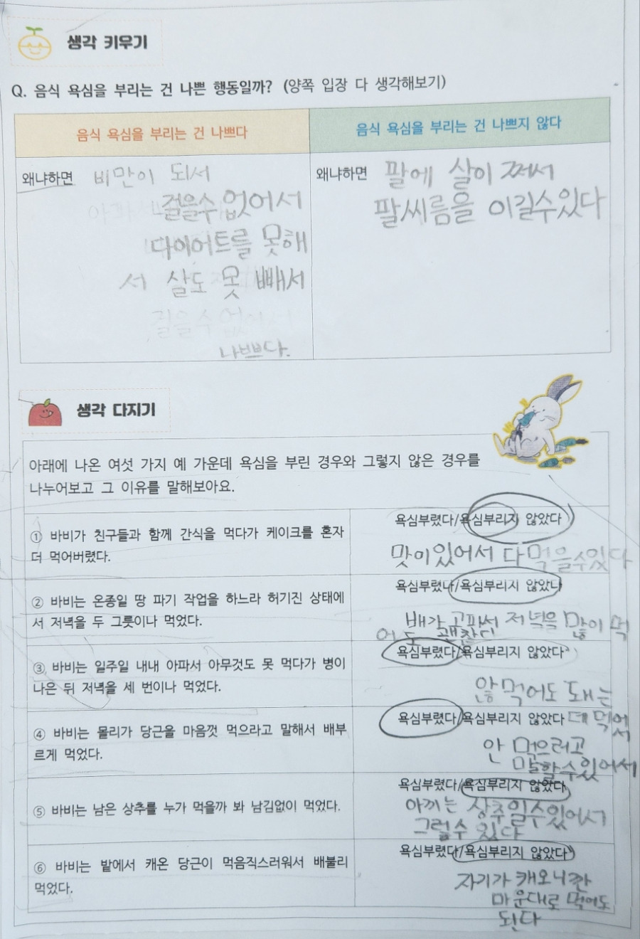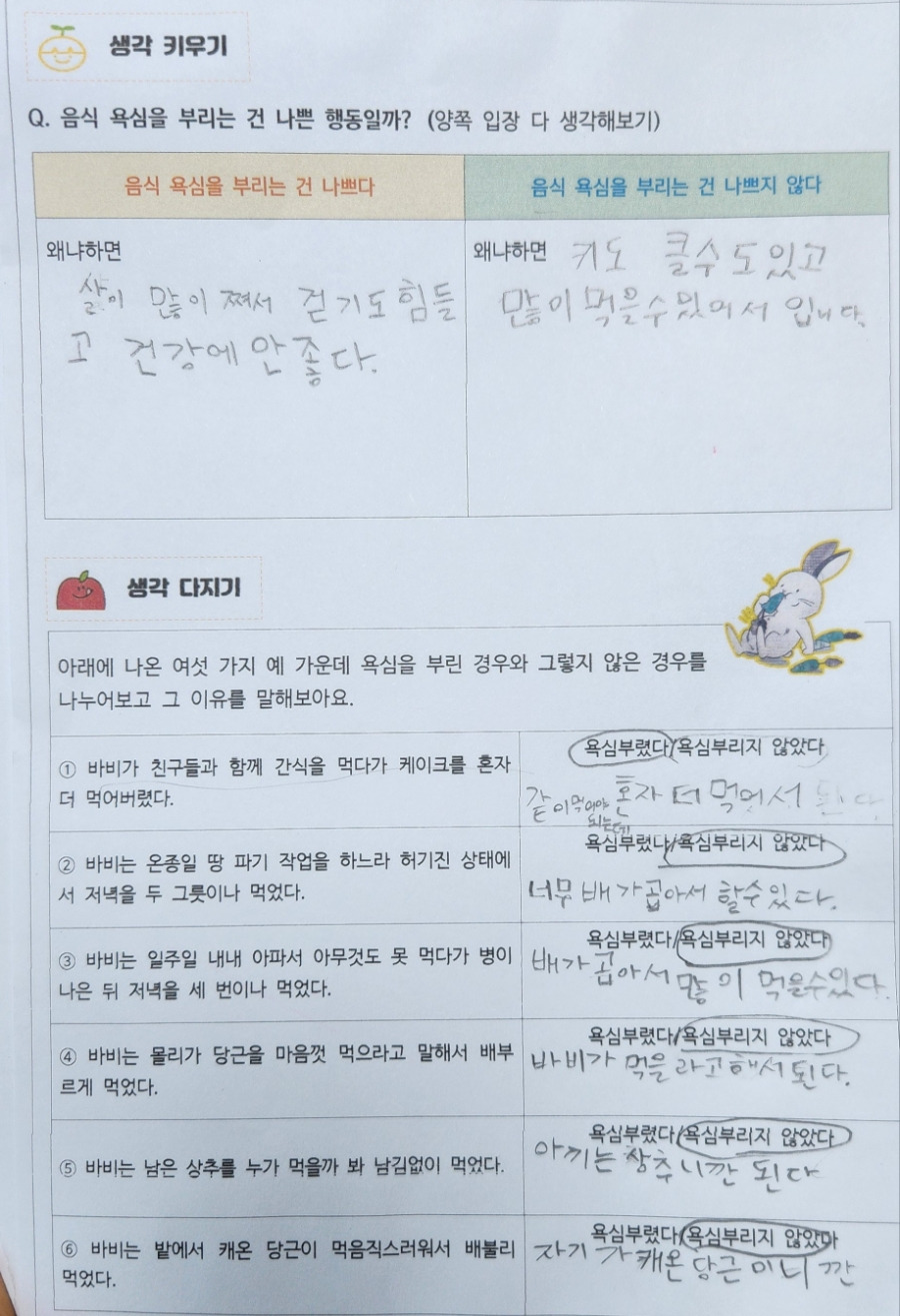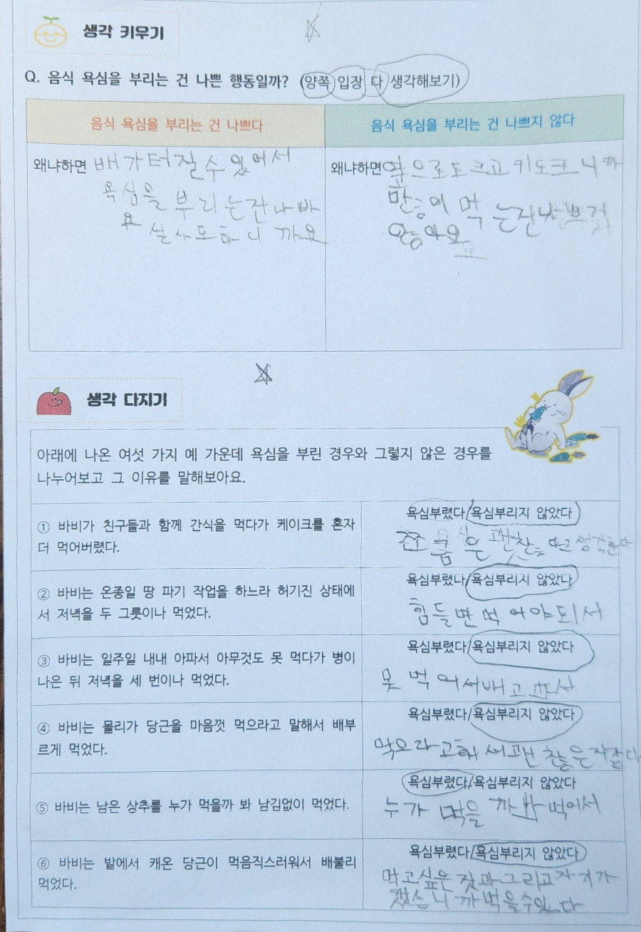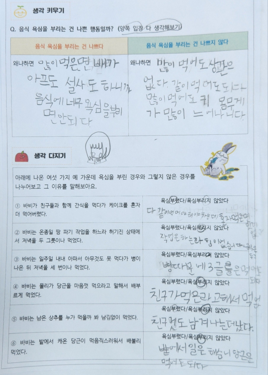 -음식 욕심을 부리는 건 나쁜 행동일까?(양쪽 입장 다 생각해 보기)