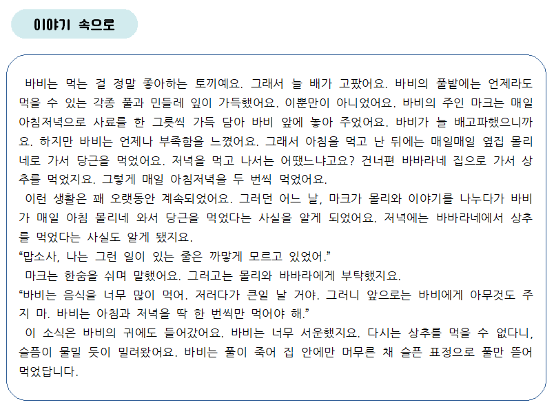 바비는 풀만 먹을 때 어떤 마음이었을까?