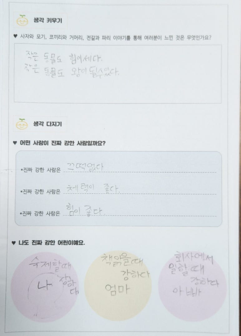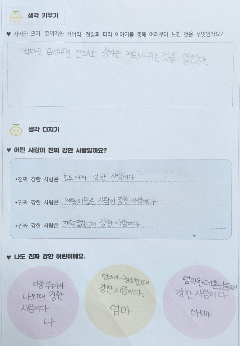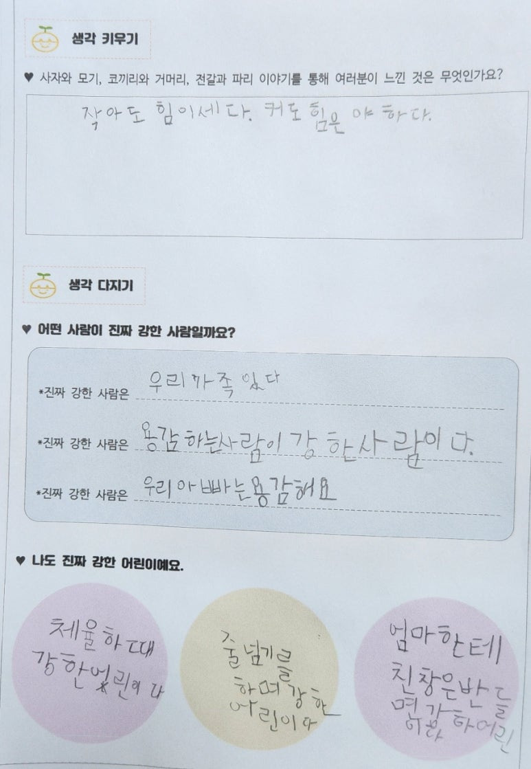 아이들이 정의 내린 '진짜 강한 사람'이 참신합니다.