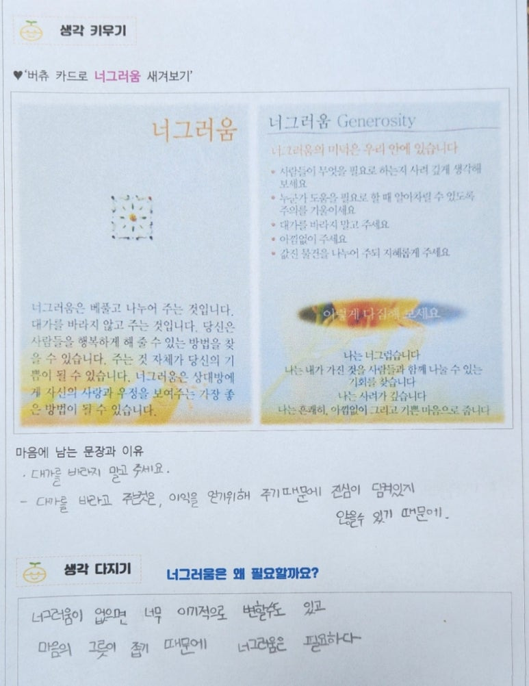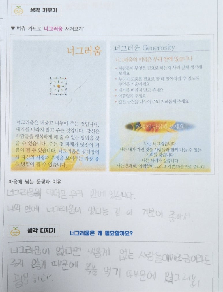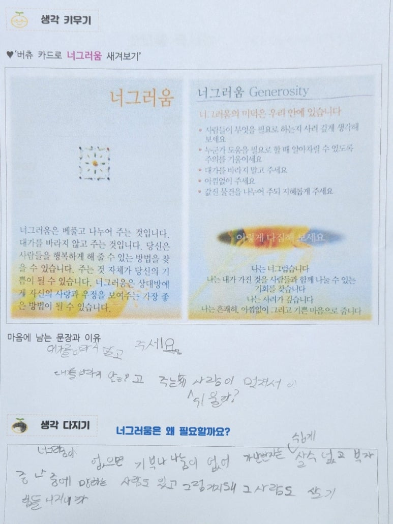-어려운 사람들의 형편을 살피는 거니까 나눔과 기부는 꼭 필요해요.