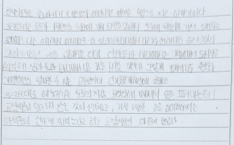 -의미 있는 말이었어요. 얘기할 것이 없었던 아이가 할 이야기를 찾을 수 있게 도와준 교장 선생님이 멋졌고 아이가 할 이야기를 찾은 것이 대단했어요.