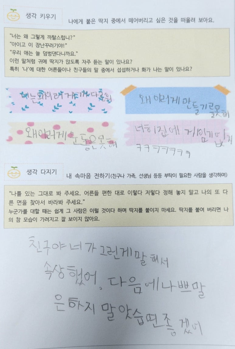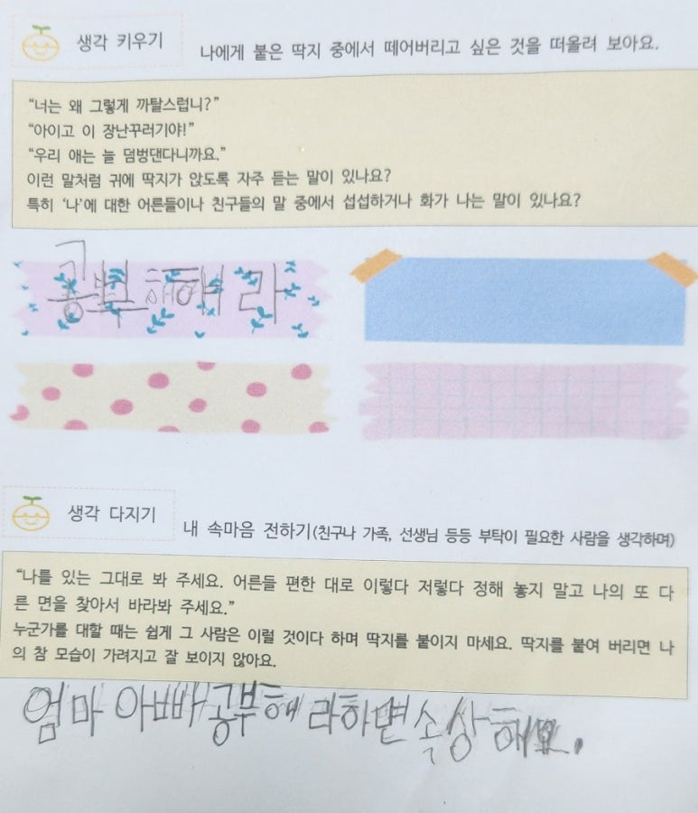나에게 붙은 딱지 중에서 떼어버리고 싶은 것을 떠올려 보아요.